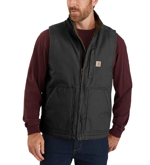 Loose Fit Washed Duck Sherpa-Lined Mock-Neck Vest
