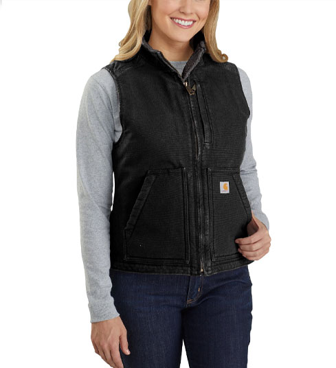 Women's Relaxed Fit Washed Duck Sherpa Lined Mock Neck Vest